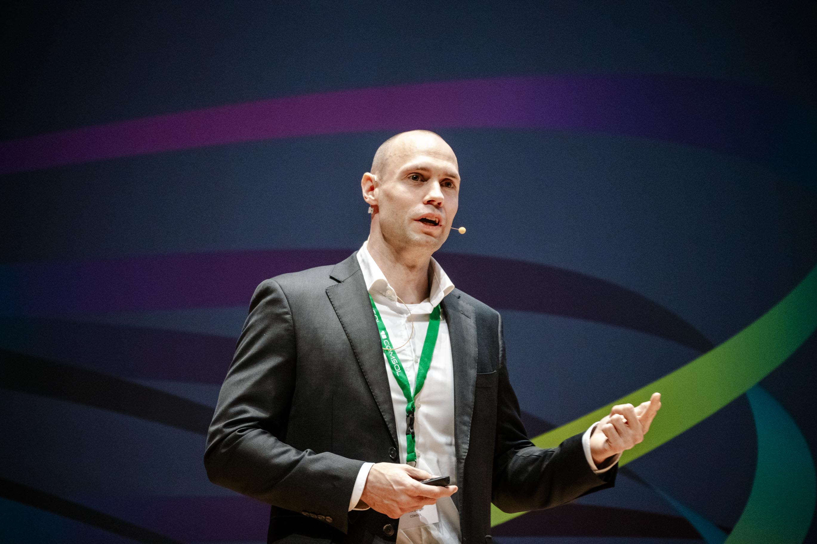 In addition to these talks, the conference included more than 20 minicourses covering in-depth modeling and simulation best practices for different areas of physics as well as demo stations where attendees were able to receive 1-on-1 guidance from our applications engineers. Attendees also saw an exclusive look at the upcoming version of the software, COMSOL Multiphysics® version 6.3, in a keynote talk given by Ruud Börger of COMSOL.